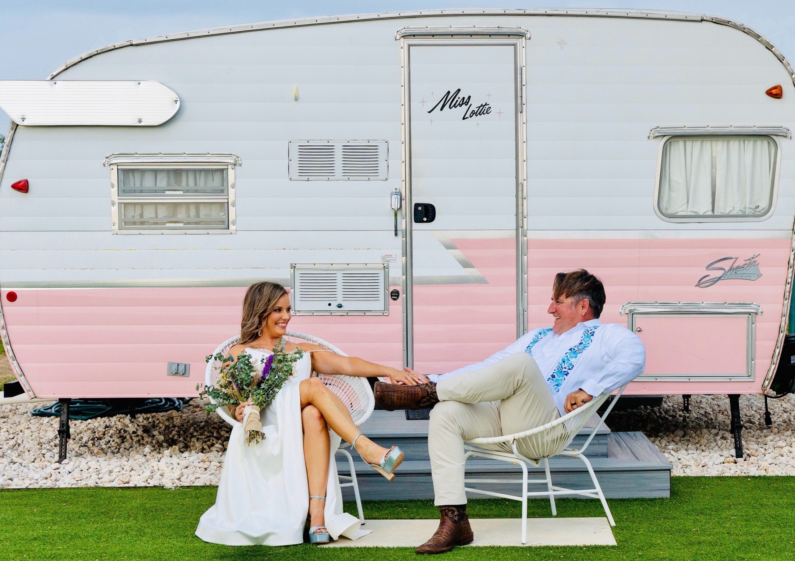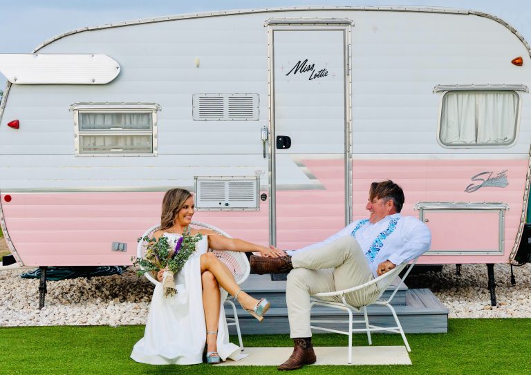 Blue Skies Retro Resort is a nostalgic destination for couples seeking vintage charm and Hill Country serenity for their wedding weekend. Located just outside Fredericksburg, this boutique resort features stylishly restored trailers, modern amenities, and dreamy desert-meets-retro vibes. With scenic views, fire pits, and poolside lounging, it’s ideal for intimate weddings, bachelorette getaways, or unique accommodations for your wedding party.
