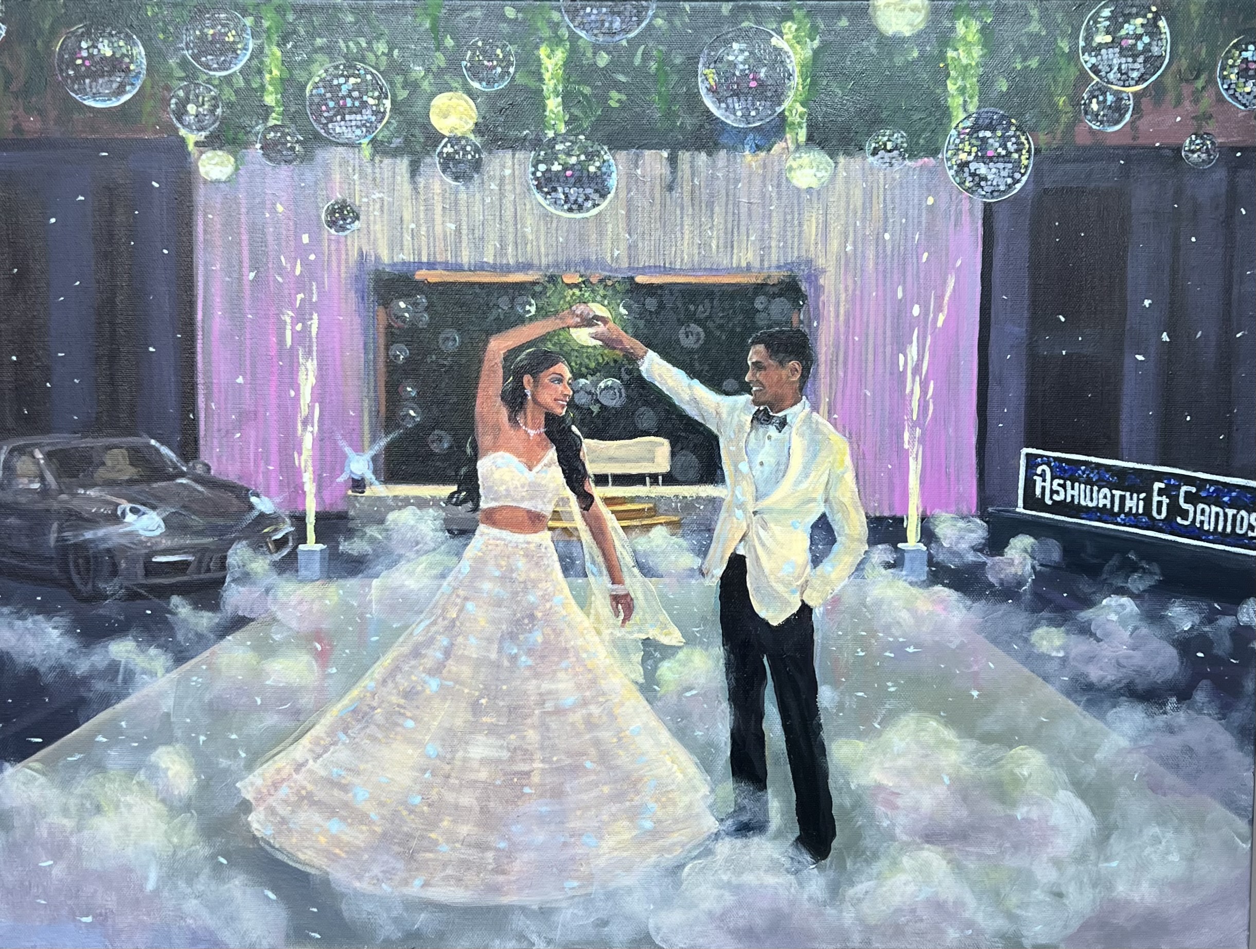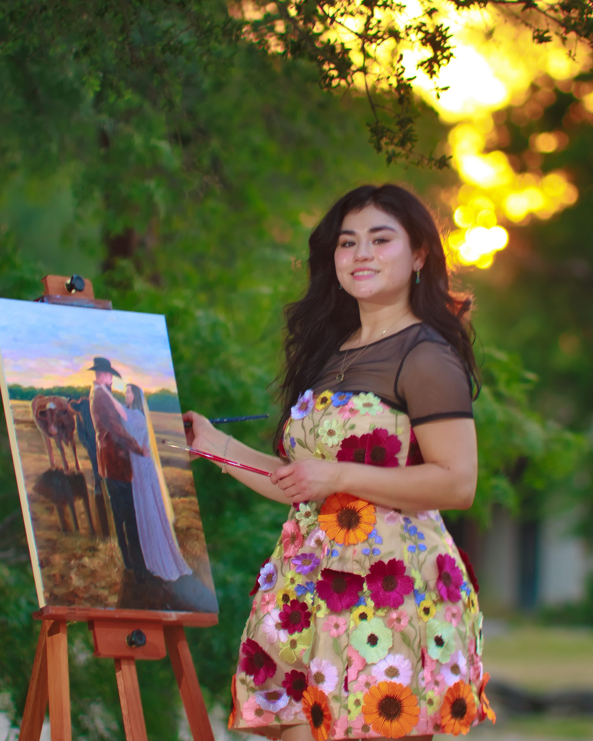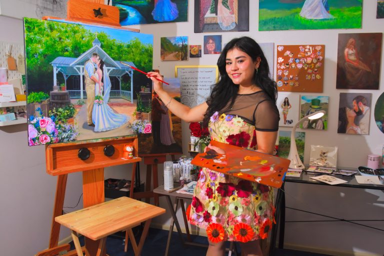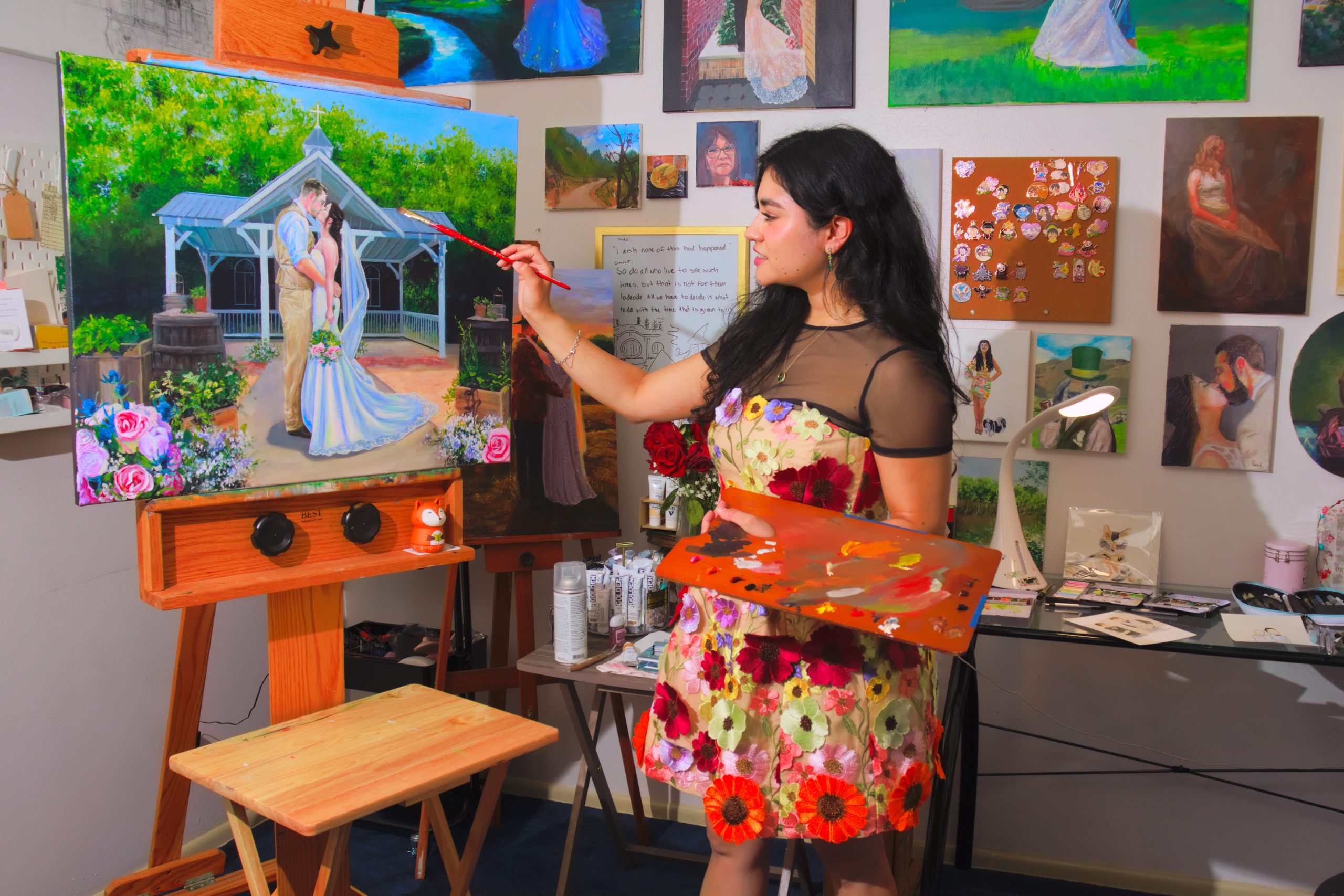 Pearl Salinas is a San Antonio-based artist specializing in live event and wedding paintings. With a heart-driven approach, she captures the essence of special moments through her art. Pearl brings a unique blend of emotion and detail to her work, ensuring each piece resonates with authenticity and love. For a closer look at her artistry, visit her Instagram. *Some paintings commissioned by snapchic wedding painting*