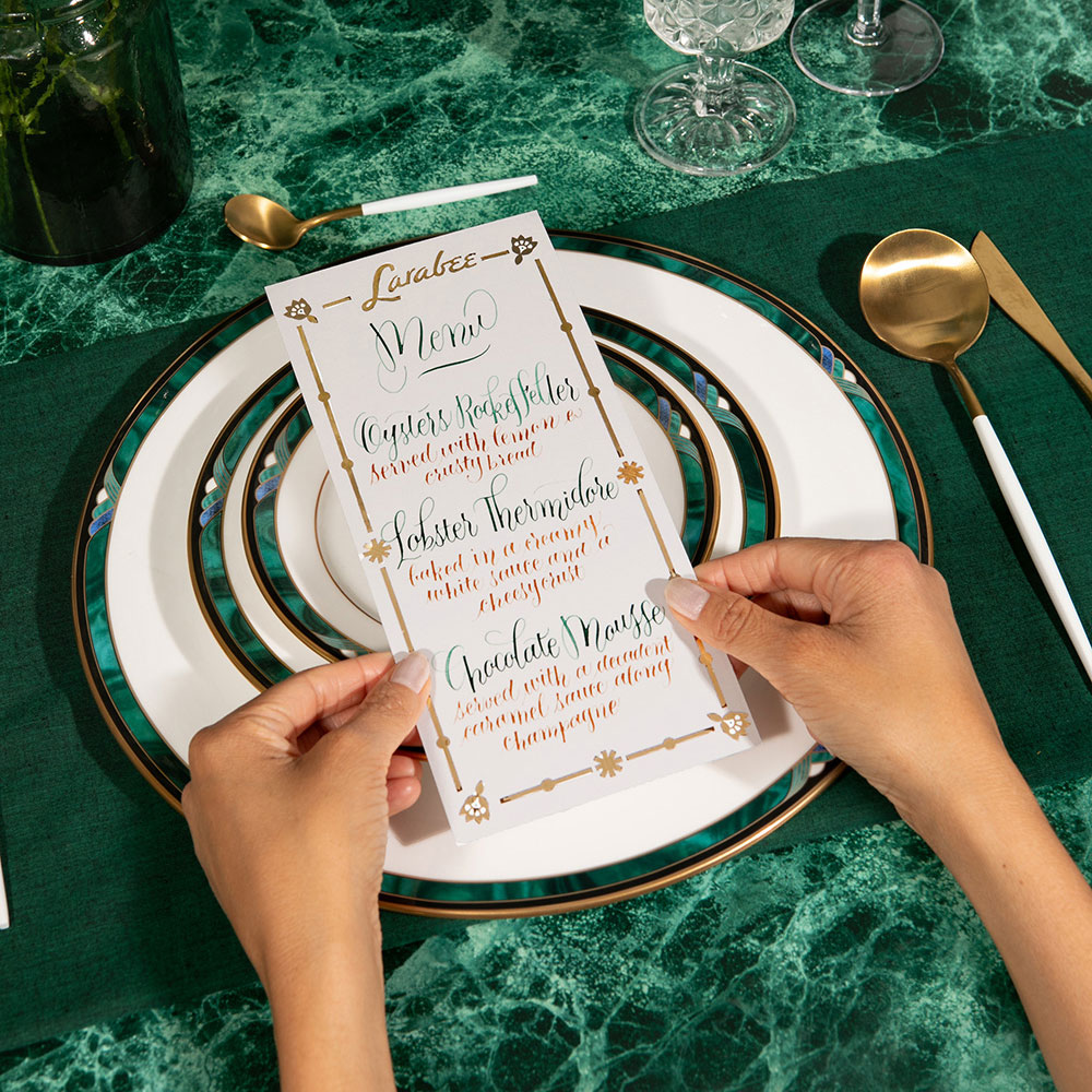 Handsome Ink is a luxury and engraving calligraphy studio in Austin, TX founded by husband and wife duo Luis and Ana. They’ve dedicated the name of their studio after their good-looking dog, Handsome, who had absolutely no say in the matter. Their mission is to bring people closer together through the art of beautiful writing.