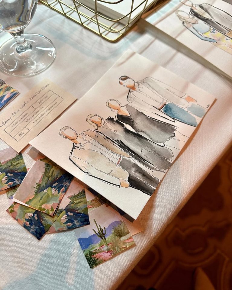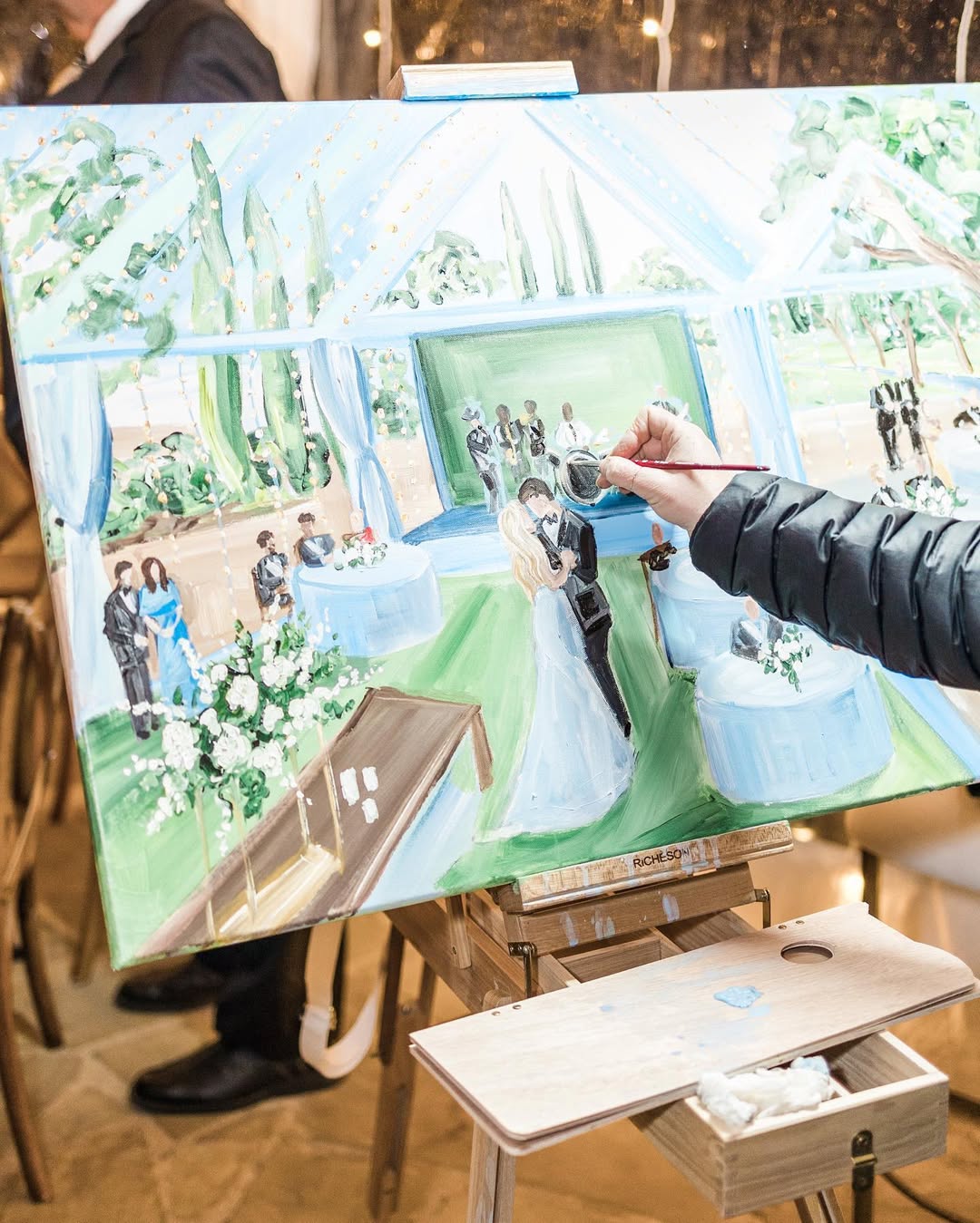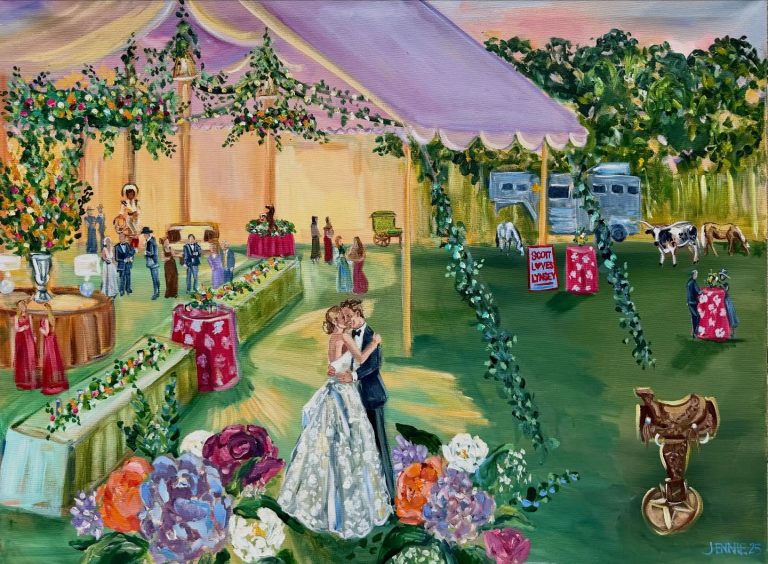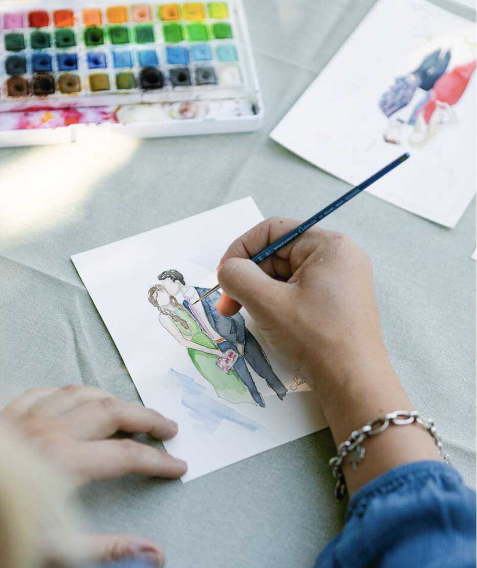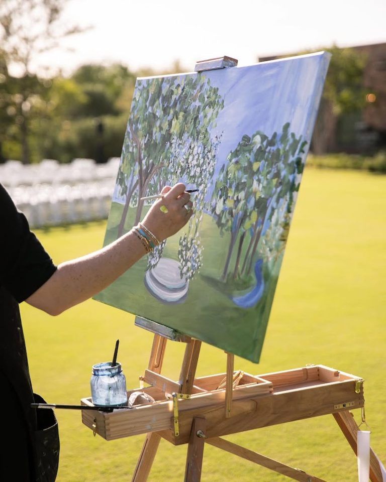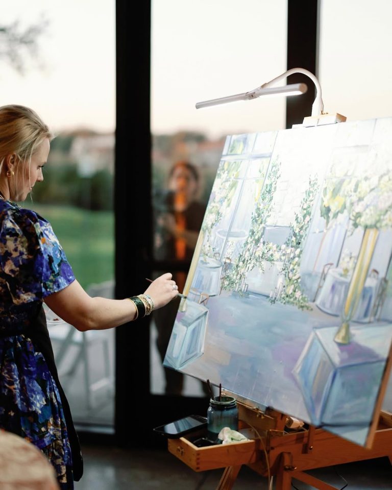 A History to Pass Down, An Expression of Your Wedding | Live event painters translating the very essence of your wedding and the way you want it to be remembered. Enjoy a rare and immersive guest experience and then take home a tangible work of art — painted on site.