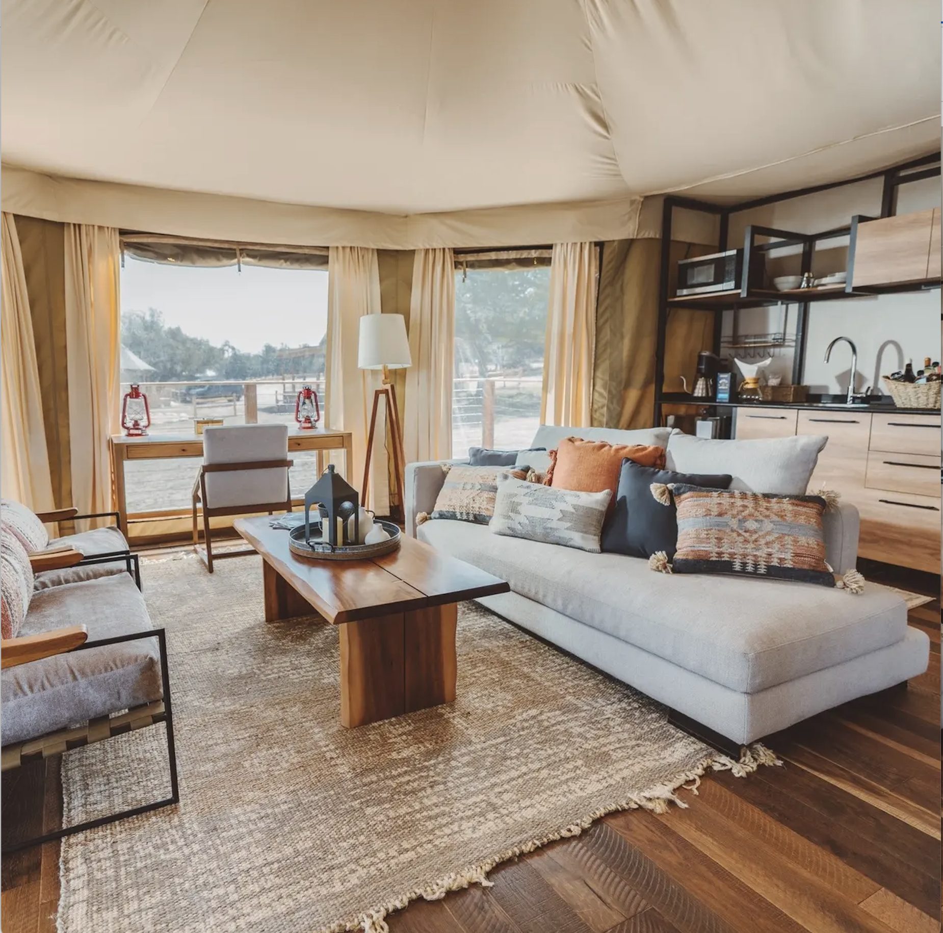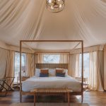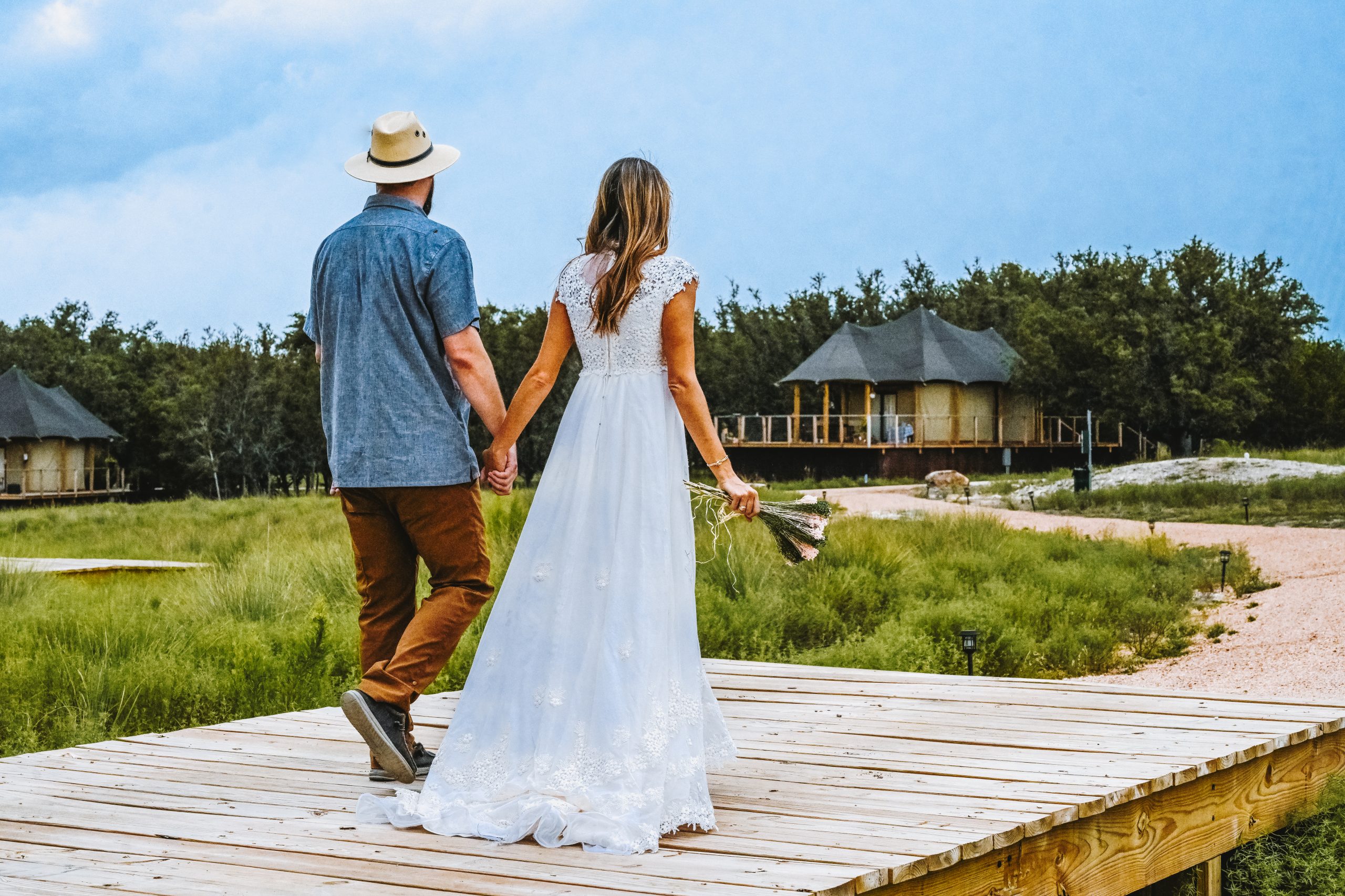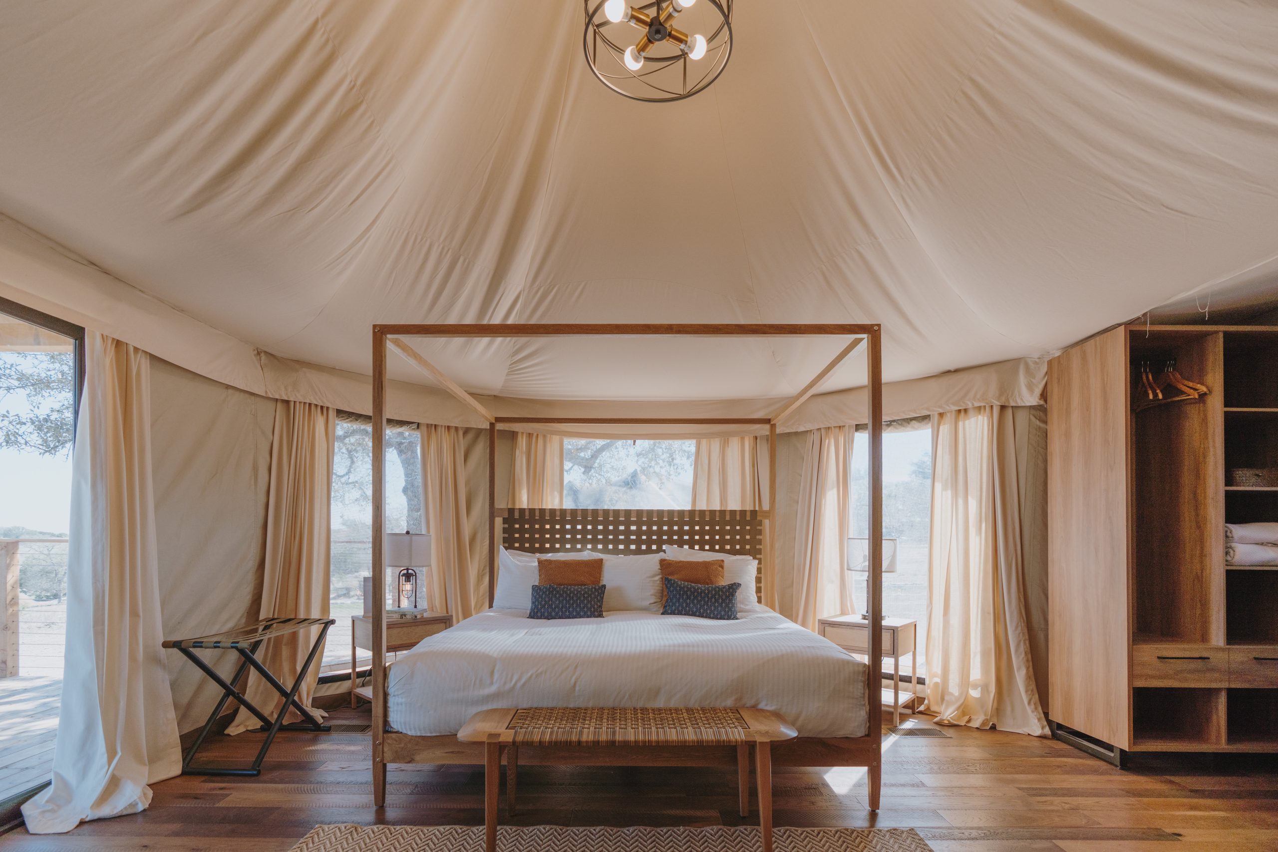 Outdoorsy Hill Country is a stunning all-in-one wedding venue in the heart of Texas Hill Country, just outside of Fredericksburg. This 34-acre retreat offers 21 luxury glamping tents with king beds, spa-like bathrooms, and climate control. The main venue accommodates up to 80 guests. With breathtaking landscapes, starry skies, and unique accommodations, Outdoorsy Hill Country creates unforgettable weddings where nature meets elegance.