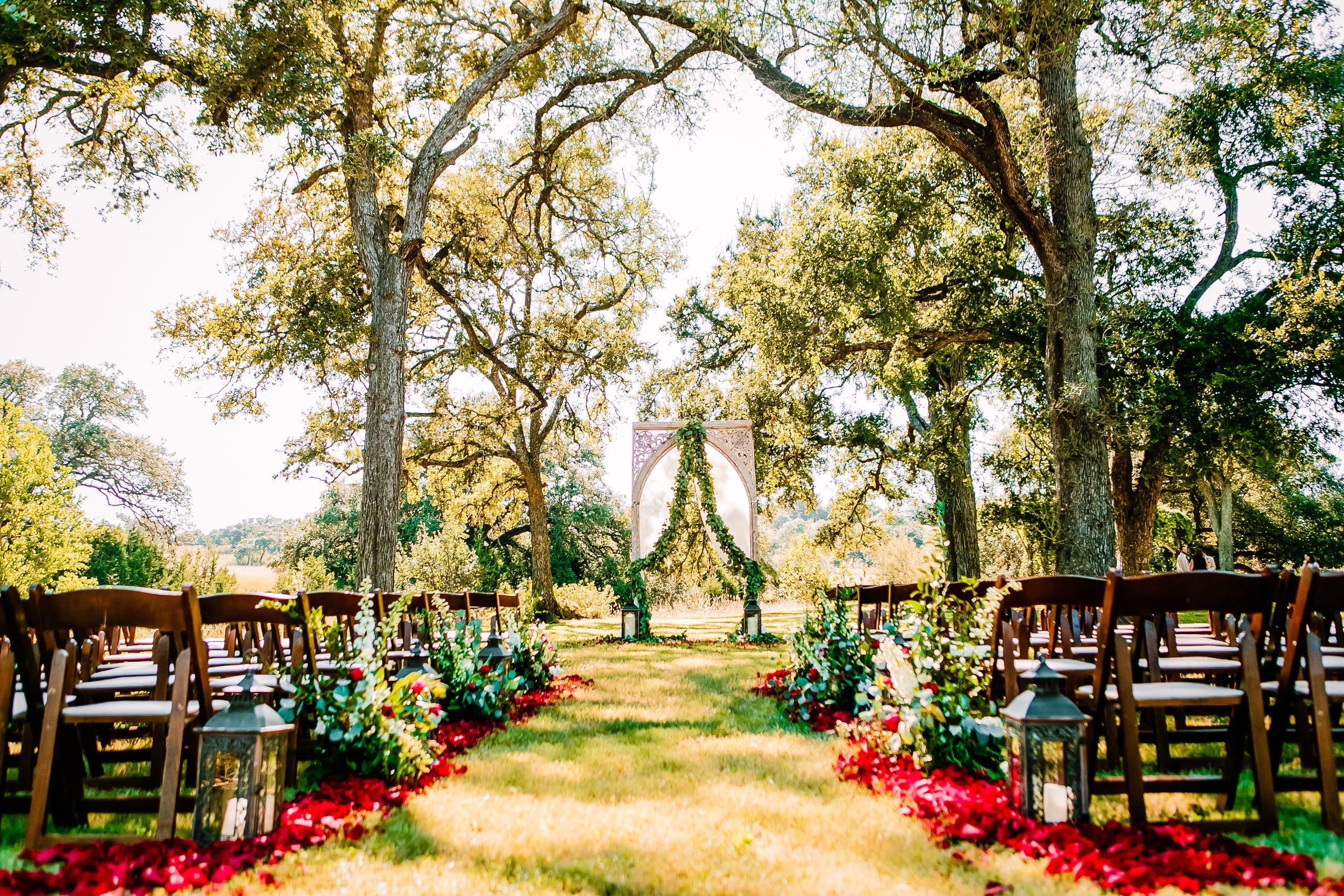 Pecan Springs Ranch is a beautiful wedding venue in Central Texas, transformed in 2013 to a special place for couples and families. Embracing natural beauty, it features materials sourced from the land, including a fireplace built with rock from the property. The venue's neutral backdrop allows couples to create their perfect day, whether a formal affair or a relaxed celebration.