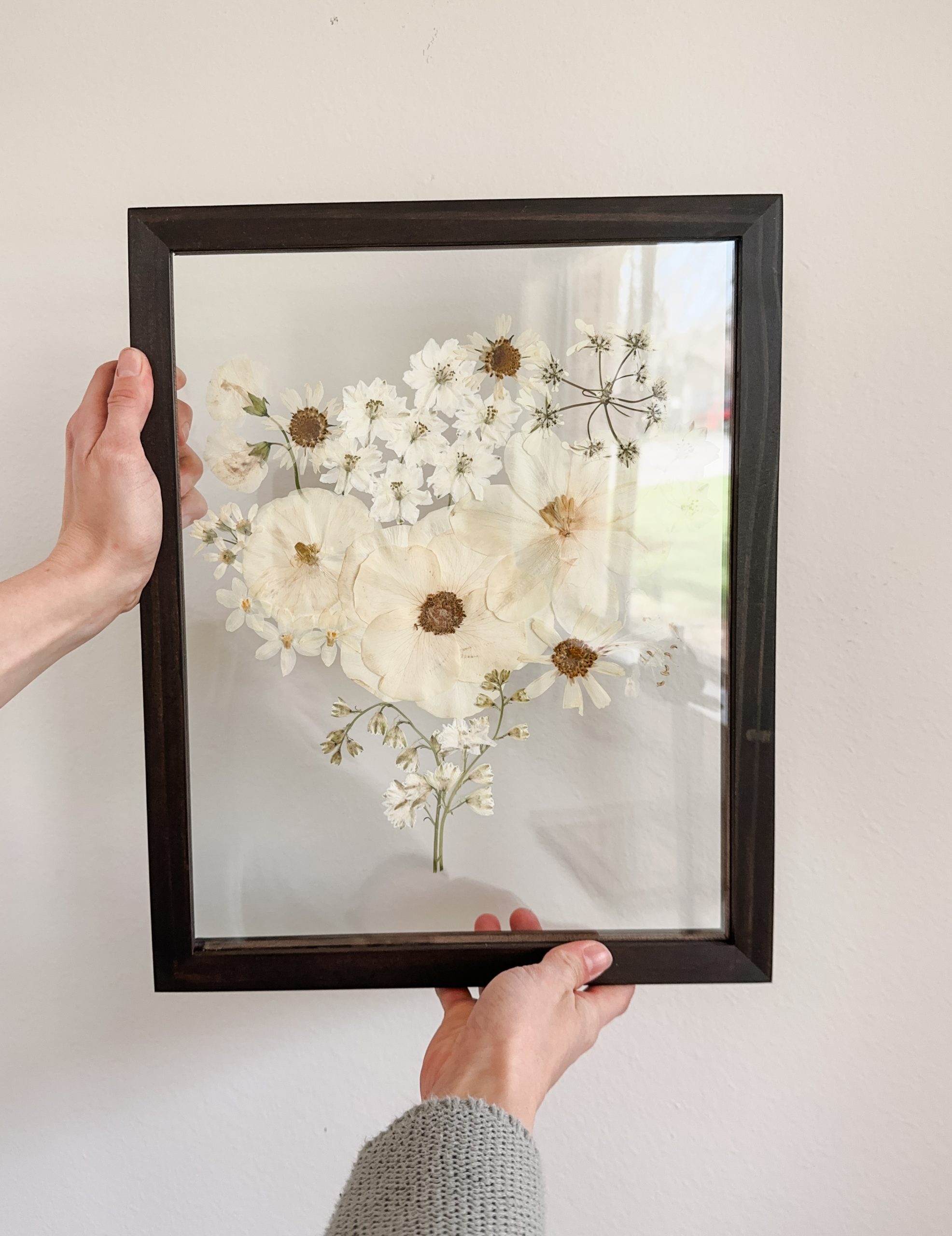 Hi, my name is Noelle. I specialize in pressing and framing wedding bouquets in floating frames. I started pressing flowers three years ago when a friend asked me to for her own wedding. After that, I was hooked! Floral preservation is a multistep process that takes dedication from the preservationist and the client. I hope we can work together to make a beautiful piece that will last forever!
