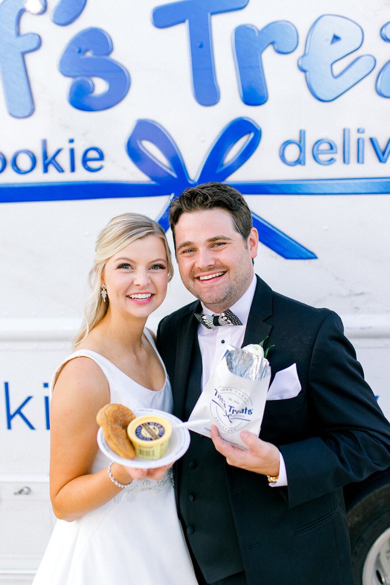 Tiff’s Treats brings a warm, nostalgic touch to your wedding day with freshly baked cookies delivered straight from the oven. Their signature food truck adds an extra layer of fun and flavor, serving up warm cookies on-site for guests to enjoy. Whether you’re looking for irresistible desserts, late-night bites, or personalized cookie favors, Tiff’s Treats makes it easy to celebrate love, laughter, and sweet new beginnings.