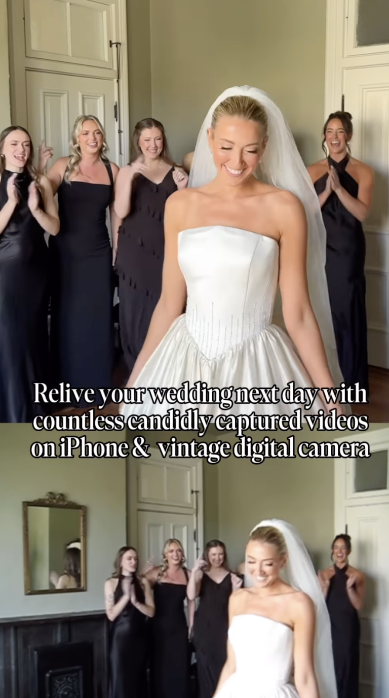 My wedding day flew by in a blur & I always wish I had captured the little moments to look back on forever. That's why I started capturing weddings! To be there for YOU — capturing every big & small moment to relive. From sweet glances together to alll the dance floor moves, you'll get all the raw moments & edited recaps within 24 hours! I capture on iPhone and a vintage digital camera in tandem. Can't wait to learn more about your wedding day!