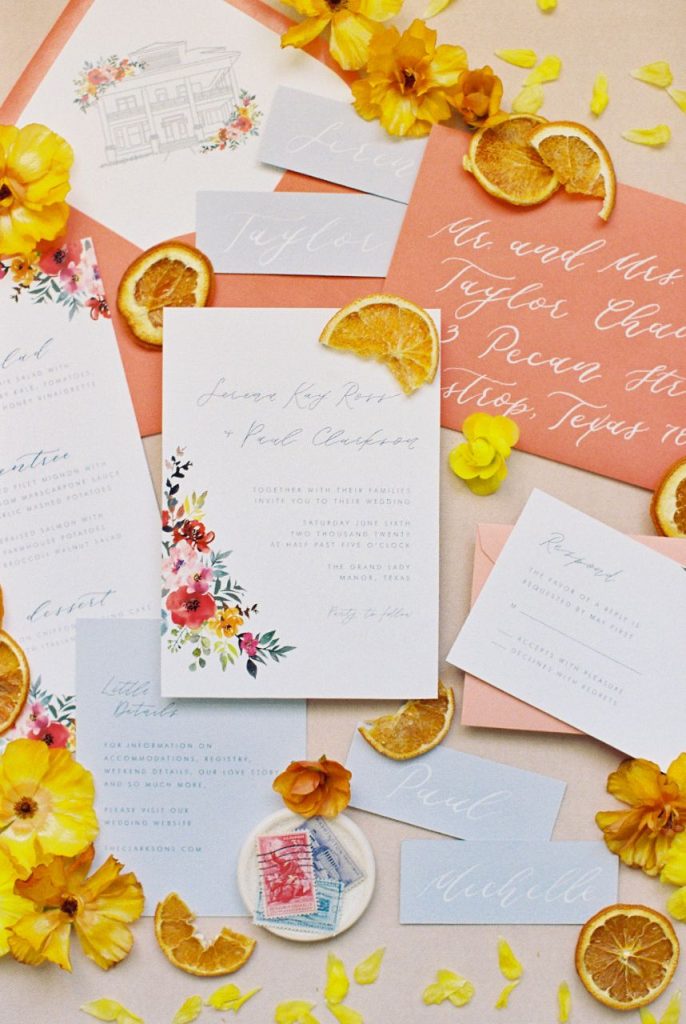 Citrusy Sweet Wedding Inspiration In Shades Of Periwinkle And Tangerine